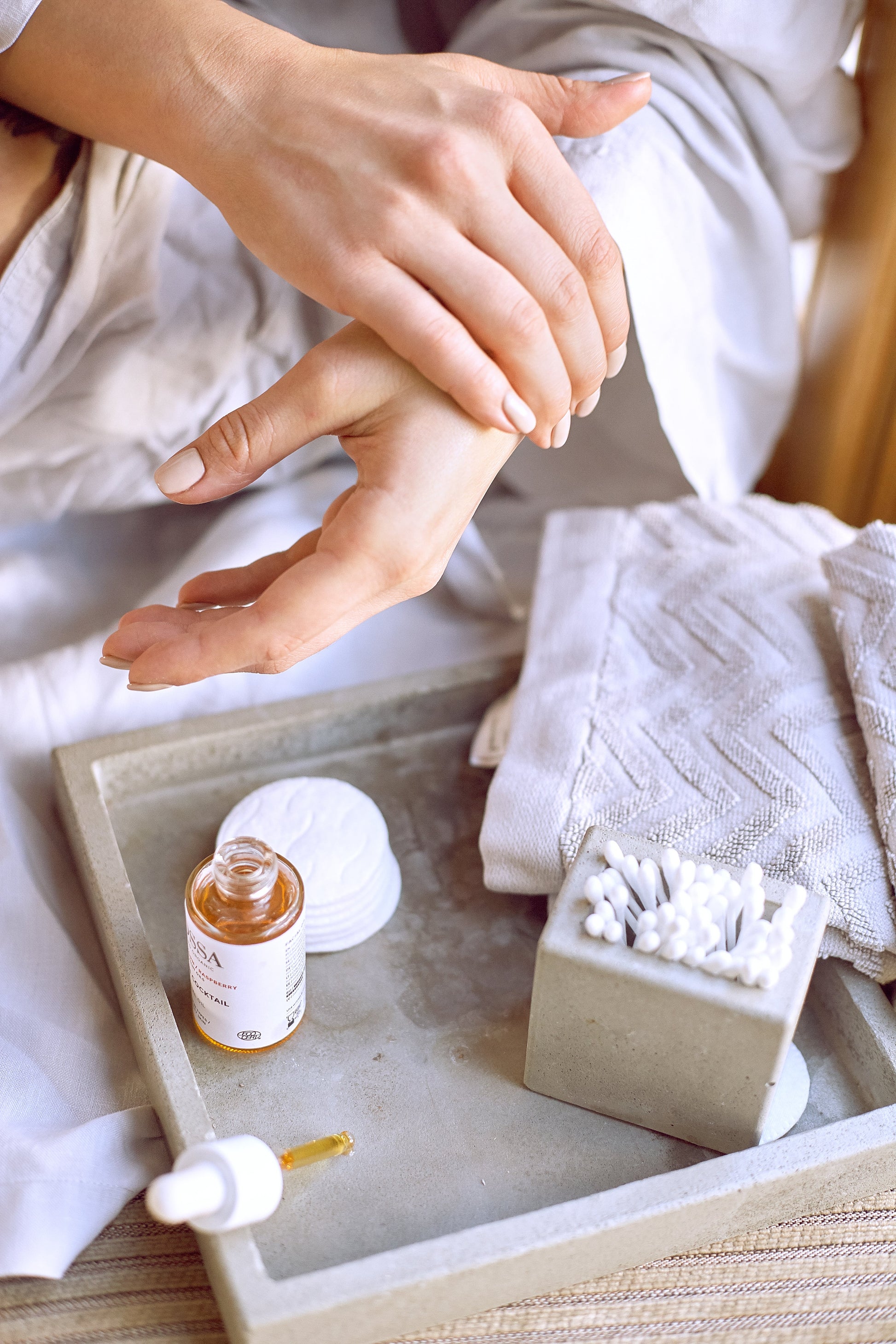 Der Mossa Facial Oil Vitamin Cocktail enthält eine einzigartige Mischung aus Bio-Ölen aus Apfel, Sanddorn, Jojobasamen, Mandel, Avocado, Olive, Aprikose, Pflaume, Birne, Hagebutte, Hafer und Tomate und ist ein kraftvolles Konzentrat speziell für trockene oder fahle Haut Haut, eignet sich aber auch als Intensivkur für alle Hauttypen. Verwenden Sie das Öl als Kur im Frühling und Herbst, wenn Ihre Haut unter Temperaturschwankungen leidet, oder wenn Ihre Haut sehr trocken oder oberflächlich trocken ist, integrieren Sie das Öl in Ihre tägliche Hautpflege. Sie können bei Bedarf auch einen Tropfen des Öls in Ihre normale Tages- oder Nachtcreme mischen.